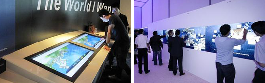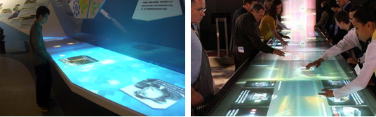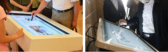 可以允許用戶在屏幕的多個(gè)位置同時(shí)輸入,與傳統(tǒng)的鼠標(biāo)鍵盤(pán)的輸入方式相比這種技術(shù)是一種完全不同的人機(jī)交互的方式。這種技術(shù)最突出的特點(diǎn)是多個(gè)用戶可以同時(shí)與機(jī)器交互,每個(gè)用戶可以用多個(gè)手指操作屏幕,更重要的是系統(tǒng)還可以識(shí)別手指的姿態(tài)比如可以用兩個(gè)手指縮放一幅圖像,用一根手指移動(dòng)物體,還可以產(chǎn)生捏的效果。應(yīng)用本系統(tǒng),參觀者不僅可以觀看到高畫(huà)質(zhì)投影的圖像,同時(shí)也可用手指觸摸玻璃表面,選擇自己感興趣的內(nèi)容,或?qū)ο嚓P(guān)信息進(jìn)行查詢。如一定時(shí)間內(nèi)無(wú)人觸摸時(shí),系統(tǒng)可自主播放設(shè)置好的信息內(nèi)容,當(dāng)有人觸摸時(shí),則自動(dòng)切換為互動(dòng)式信息展示狀態(tài)。